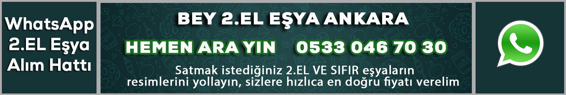 29 Nisan 2018Ankara’nın her semtinden ikinci el eşyaları anında nakit alıyoruz. Dilerseniz 0533 046 70 30 whatsapp resim atarak ürünlerinize fiyat talep edebilirsiniz. O gün içerisinde size dönülecektir. Ama yok benim işim...